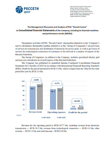 Rosseti Centre, PJSC (the ticker – MRKC) has published its interim condensed consolidated financial statements (unaudited) for the three and nine months ended 30 September 2025 in accordance with International Financial Reporting Standards (IFRS).