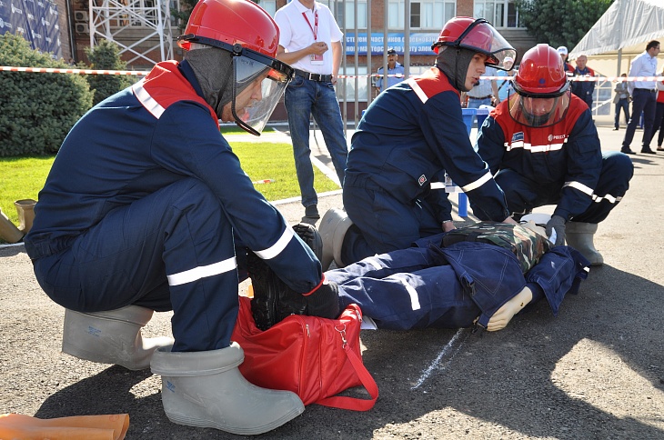 Stage number 2 - "Relieving the victim with electric shock and providing first aid" is one of the most dynamic and spectacular. Conditionally it is divided into two sub-stages. During the first one the team has to release the victim from the impact of electric current and transfer him to a safe distance. In the role of "injured" is a mannequin with a figure and mass, like an adult, in overalls, shoes, with a helmet on his head. The second sub-step - providing the victim with first aid - consists of demonstrating knowledge and skills of carrying out activities to provide cardiopulmonary resuscitation.