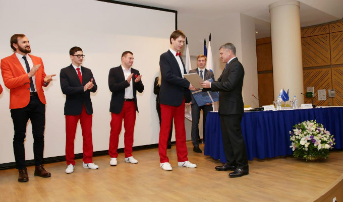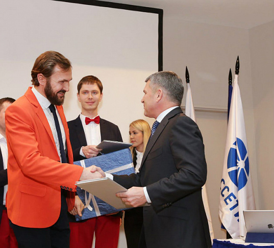 Igor Makovskiy, General Director of IDGC of Centre - the managing organization of IDGC of Centre and Volga Region, presented letters of appreciation and valuable gifts to the captain of the KVN team “Yarenergo” of a branch of IDGC of Centre - Yarenergo Anton Sukharev and the captain of the KVN team “Substation “Vyatka” of a branch of IDGC of Centre and Volga Region - Kirovenergo Maxim Koshelev.