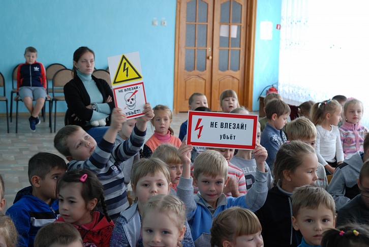 The power engineers also introduced the children to the prohibitory signs, which are placed on substations and power line poles, demonstrated the means of protection and equipment of the electrician. And at the end of the lesson the children watched an animated film about electrical safety.
