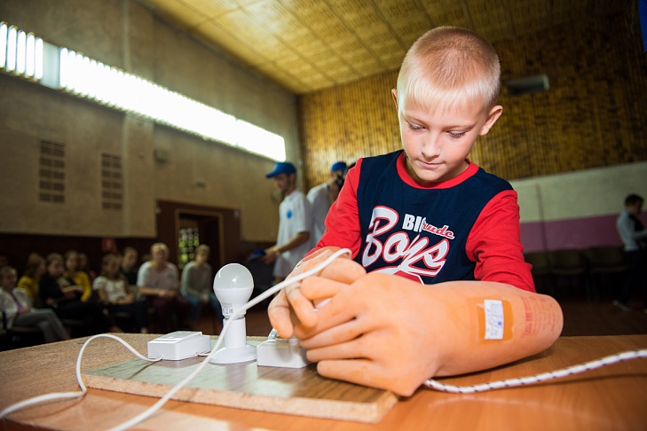 The power engineers reminded the children about the main dangers associated with the impact of electric current, after which they offered them some practical tasks on the topic. The schoolchildren learned why games should not be organized near power lines and substations, which signs warn of the danger of electric shock, and also competed in replacing blown lamp bulbs and exiting the step voltage zone. In addition, they received the skills of first aid to the victim from the impact of electric current.