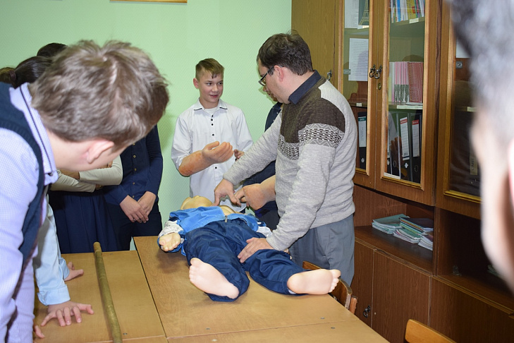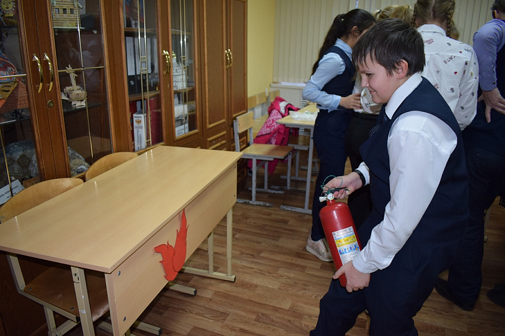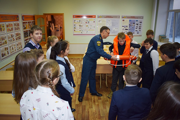 The quest was held in the building of the educational institution. The organizers deployed several stations here, where schoolchildren were waiting for logical tasks on various subject areas. At the “Island of Safety” stage, the GIMS representatives told them about the rules of behaviour on the ice, as well as about the rescue of those who fell through it. At the point “Fire Safety”, the VDPO employees taught the children to use fire extinguishers correctly and introduced them to the contents of the first-aid kit.