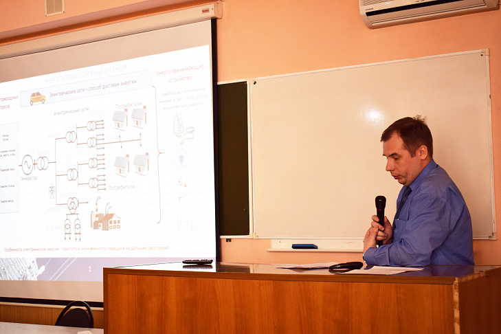 The lecture began with the presentation of the “ABC of digital transformation” developed by IDGC of Centre. Its main sections were presented by the head of the technological development office of Kostromaenergo Mikhail Soloviev, the leading engineer of the office of energy saving and energy efficiency improvement of the branch Andrey Smirnov and the leading engineer of the section for operation of automated systems Andrey Mozokhin.