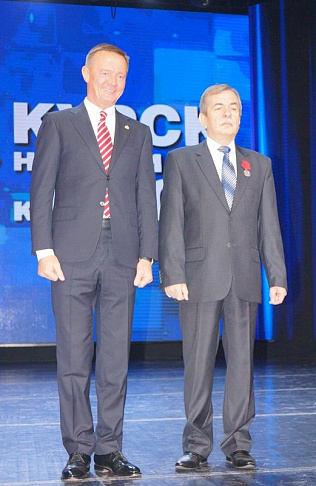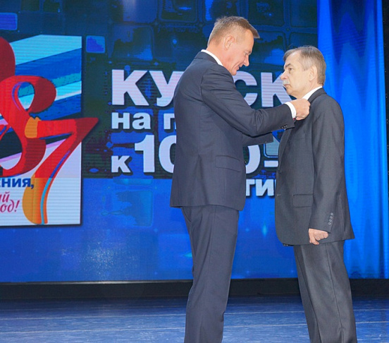 Governor of the Kursk region Roman Starovoit at the solemn meeting dedicated to the Day of the city of Kursk presented the state award to Alexey Kirienkov, a dispatcher of the operational and technological service of the Grid Control Centre of the branch “Rosseti Centre Kurskenergo”.