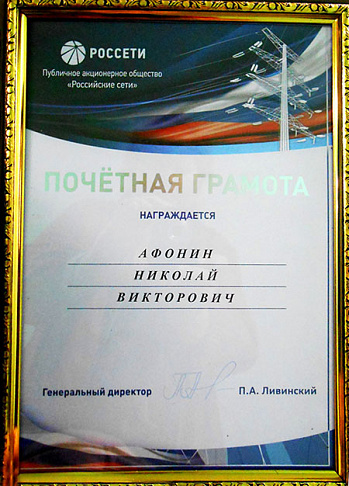 Nikolay Afonin, an electrician of a first responding mobile crew of the operational-technological group of Kostromsky Distribution Zone of the branch “Rosseti Centre Kostromaenergo” was awarded the Certificate of Honour of PJSC Rosseti. The award was presented for a significant contribution to the development of the electric grid complex of the Kostroma region and many years of conscientious work.