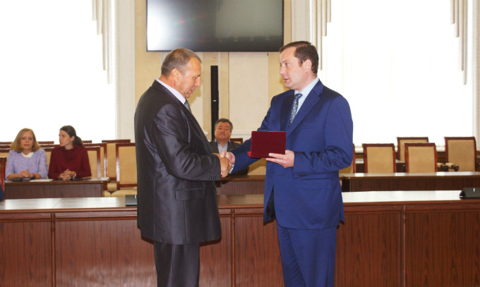 According to the Decree of the President of the Russian Federation Vladimir Putin No. 392 dated 23.08.2019 for achievements in the field of energy, many years of work and highly skilled work, a driver of a truck crane of the eastern section of mechanization and transport of the branch “Rosseti Centre Smolenskenergo” Viktor Izotov was awarded the honorary title “Honoured Power Engineer of the Russian Federation”. The award was solemnly presented by Governor of the Smolensk region Alexey Ostrovsky.