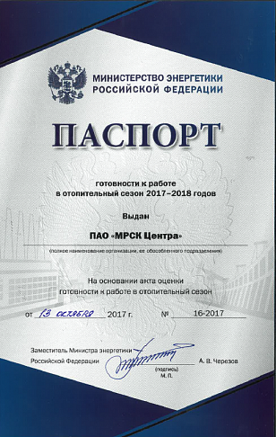 IDGC of Centre received its certificate of readiness for operation through the autumn-winter maximum of loads in 2017/2018. The document certifying the successful completion of preparations for the autumn-winter period was presented to the company’s CEO Oleg Isaev by Chair of the Commission of the Ministry of Energy of Russia, Deputy Director of the Department for Operational Control and Management in the Electric Power Industry of the Ministry of Energy of the Russian Federation Elena Medvedeva.