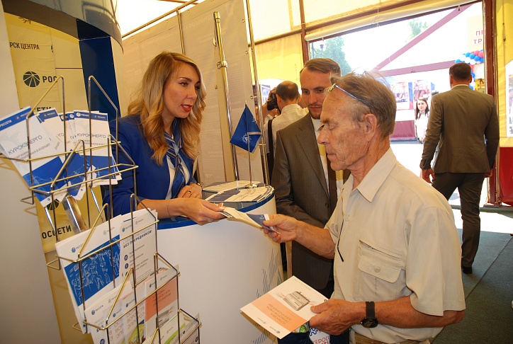 The exposition of IDGC of Centre is located in one of the central pavilions of the fair "Regions of Russia and the CIS". Specialists of the Kursk branch of the company presented here the main activities and additional services of the Company, as well as new technologies implemented at power facilities. In addition, as part of the annual "Territory of Safety" campaign aimed at organizing safe summer holidays for children, they held drawings competitions on the asphalt "Energy through the Eyes of Children" and "I choose safety!".