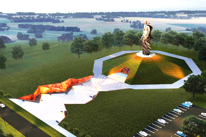 The central sculpture of the memorial will be the figure of a warrior: a 25-metre bronze monument on a steel frame will be installed on a 10-metre bulk mound near the village of Khoroshevo. Currently, preparations are underway for the installation of the monument. The creation of the architectural ensemble involves a large-scale infrastructure and a comprehensive project for the development of the adjacent territory. Especially for the memorial, an original backlight system was developed.