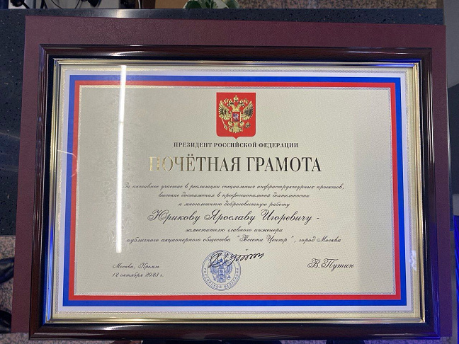 The award was received for active participation in the implementation of special infrastructure projects, high achievements in professional activities and many years of conscientious work, readiness for dedicated work and a constant desire to benefit the Motherland.