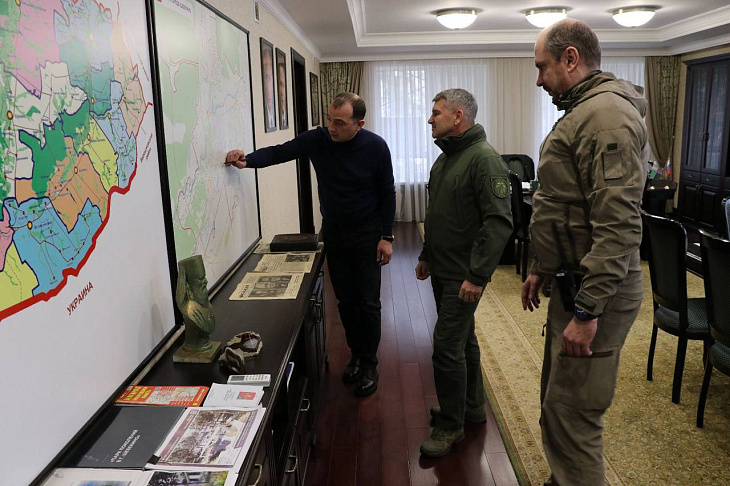 As part of his work in the Belgorod region, General Director of Rosseti Centre, Igor Makovskiy, met with the heads of the Shebekinsky and Grayvoronsky urban districts, Vladimir Zhdanov and Gennady Bondarev. They discussed the organization of reliable power supply to polling stations on election days and the work of power engineers in the face of external threats. The leaders of the city districts unanimously expressed their gratitude to the energy company’s employees for their dedicated work, which now involves risking their lives, and the rapid restoration of power supply to residents.
