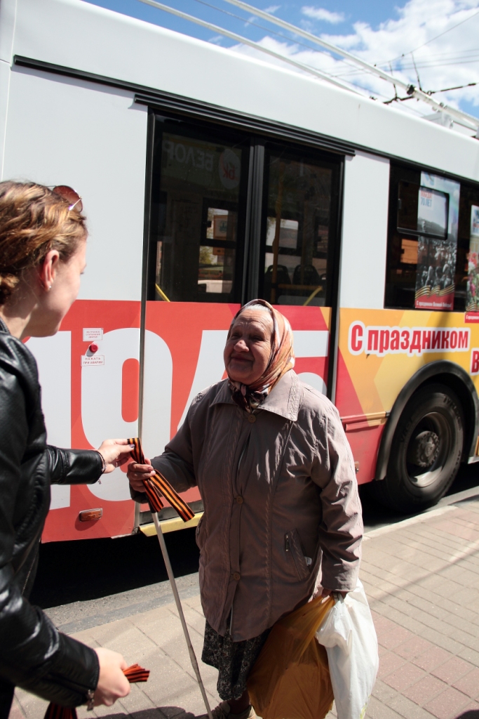 Жители Брянска с радостью встречали энергетиков. Автомобилисты сигналили, приветствуя троллейбус, и специально тормозили на остановках, чтобы взять ленту. Прохожие, подходя за оранжево-черным символом, благодарили организаторов мероприятия. В общей сложности в ходе акции было роздано более тысячи георгиевских ленточек.