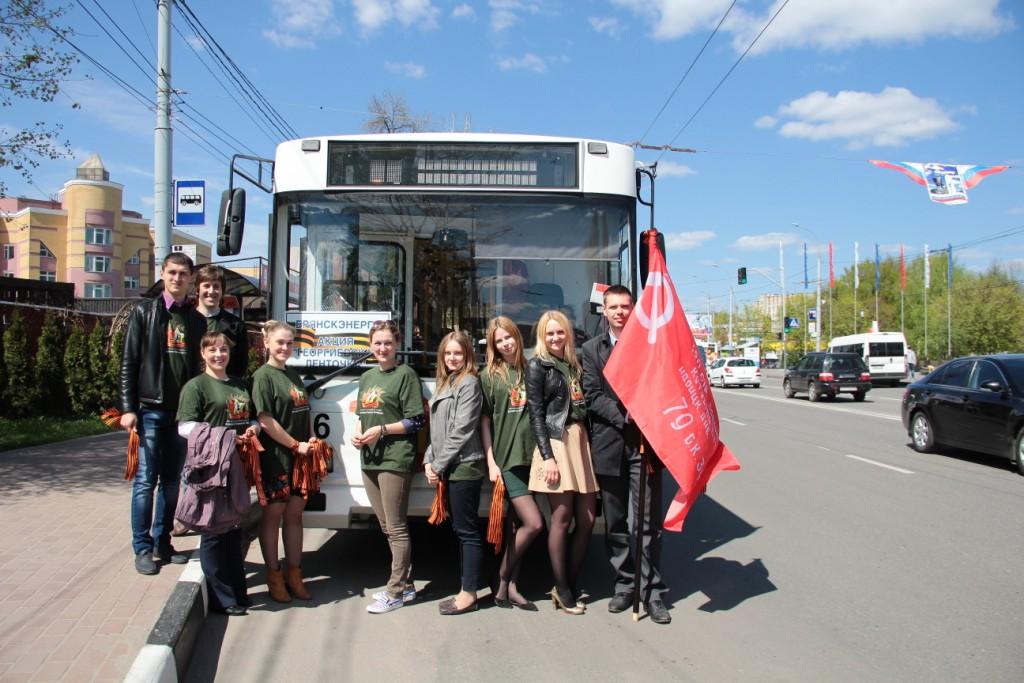 Специалисты филиала ОАО «МРСК Центра» – «Брянскэнерго» приняли участие во Всероссийской акции «Георгиевская ленточка». Мероприятие было организовано Советом по работе с молодежью филиала и второй год подряд прошло в «мобильном» формате: сотрудники компании проехали на празднично оформленном троллейбусе по памятным местам Брянска, связанным с историей Великой Отечественной войны, вручая на остановках горожанам символ Победы.
