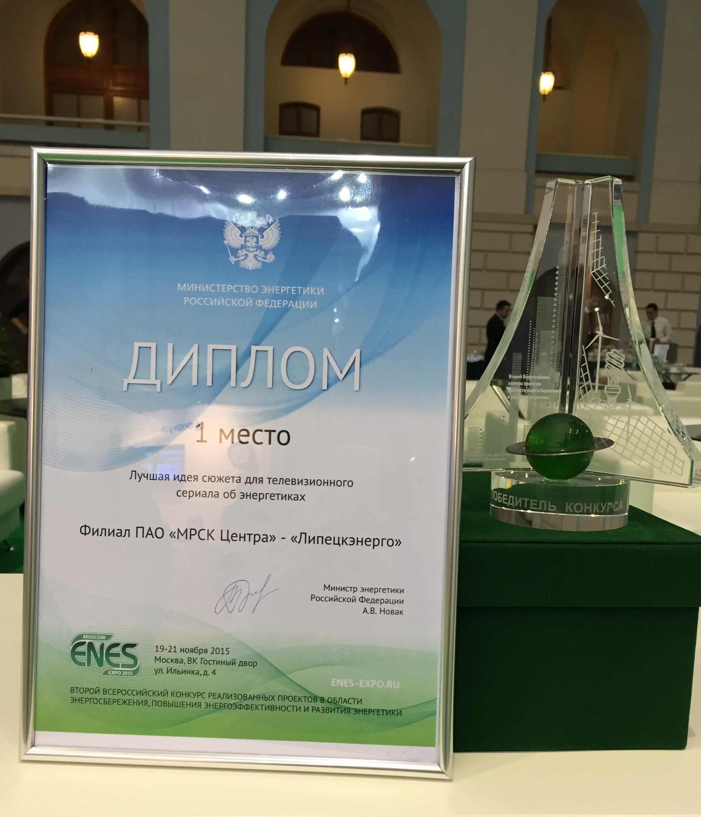Проект инженера первой категории производственно-технической группы филиала ПАО «МРСК Центра» - «Липецкэнерго» Дмитрия Бутова вошел в число победителей Всероссийского конкурса реализованных проектов в области энергосбережения, повышения энергоэффективности ENES- 2015.