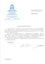 Администрация Смоленской области выразила искреннюю благодарность руководителю и всему коллективу ПАО «МРСК Центра» за обеспечение бесперебойного электроснабжения потребителей области в дни новогодних праздников с 31 декабря 2015 года по 11 января 2016 года. Как отмечается в письме, благодаря профессиональной и добросовестной работе персонала, а также тому, что смоленский филиал МРСК Центра делает для надежного обеспечения области электрической энергией в течение года, праздничные дни прошли без перебоев в электроснабжении.