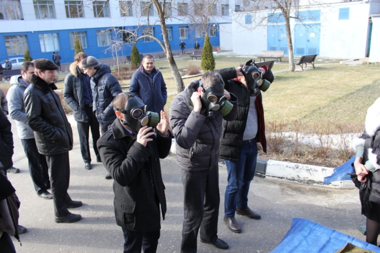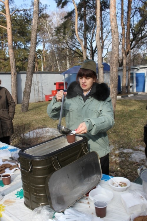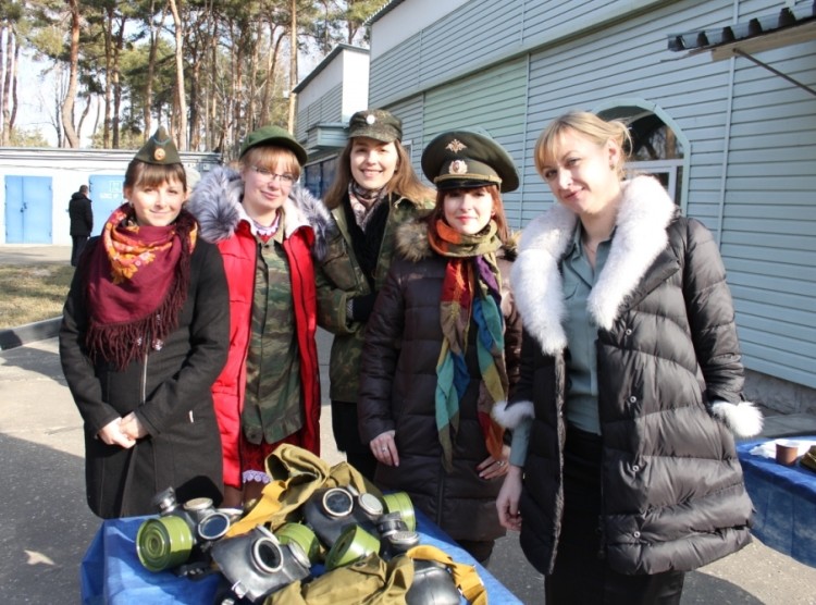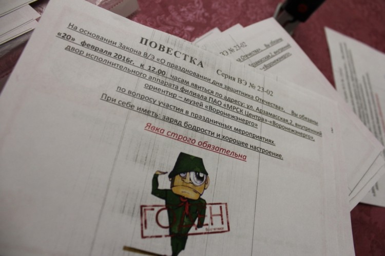 Торжественные мероприятия накануне праздника прошли и в исполнительном аппарате Воронежэнерго. Сотрудницы компании в военной форме вручали своим коллегам-мужчинам повестки с приглашением на сборы. Здесь защитникам пришлось продемонстрировать умение надевать противогаз, после чего их ждал полевой обед - каша с тушенкой и чай.