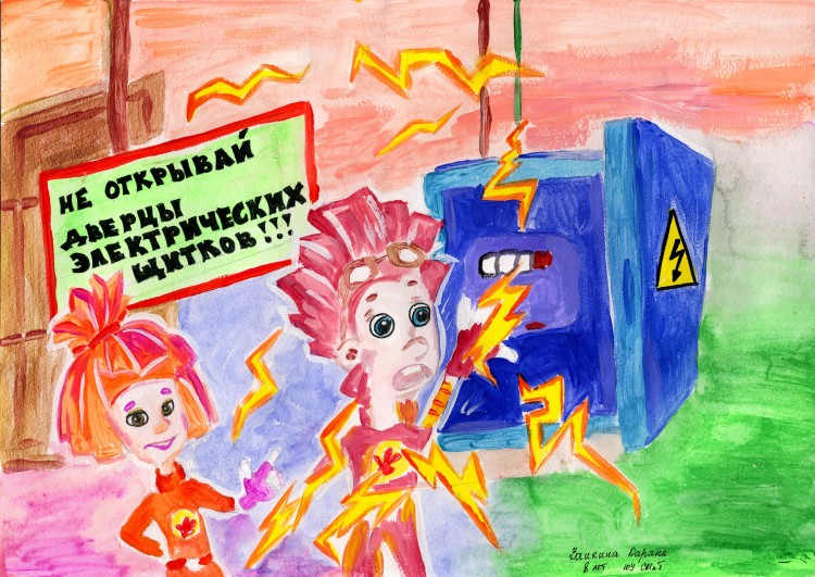 В номинации «Электробезопасность дома и на улице» в группе детей от 5 до 7 лет первое место занял Вольвач Захар из города Суджа. Его рисунок представляет наглядную иллюстрацию, предупреждающую детей о необходимости соблюдения правил электробезопасности.