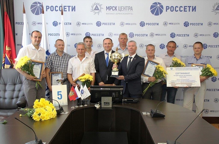 В филиале ПАО «МРСК Центра» - «Брянскэнерго» прошла торжественная церемония награждения работников предприятия - победителей соревнований профессионального мастерства бригад по ремонту и обслуживанию оборудования подстанций 35-110 кВ ПАО «МРСК Центра». В состав команды, занявшей первое место на профессиональных корпоративных состязаниях, вошли пять представителей филиала: начальник управления высоковольтных сетей Федор Капшуков (капитан), мастер службы подстанций Олег Силаев, электрослесари по ремонту оборудования распределительных устройств - Юрий Вожегов, Андрей Макеенко, Виктор Белаш, и электромонтер оперативно – выездной бригады Ильи Абашкин. Поздравить их собрались представители руководства предприятия, коллеги, ветераны-энергетики