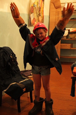 Ребята посмотрели мультфильмы о том, чем опасно несоблюдение правил электробезопасности, и получили соответствующие памятки. Чтобы участники урока лучше представляли себе работу электромонтеров, специалисты Орелэнерго продемонстрировали им их экипировку: каски, защитные костюмы, диэлектрические перчатки и боты, разрешили все это примерить. Затем ребята прокатились на высокопроходимом автомобиле ТРЭКОЛ, на котором работники Орелэнерго осуществляют объезды линий электропередачи в труднодоступной местности.
