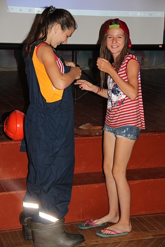 Ребята посмотрели мультфильмы по теме занятия и получили соответствующие памятки. Чтобы участники урока лучше представляли себе работу электромонтеров, специалисты Орелэнерго продемонстрировали их экипировку: защитные каски, костюмы от термического воздействия, диэлектрические перчатки и боты, разрешили все это примерить. Затем ребята прокатились на электромобиле МРСК Центра.