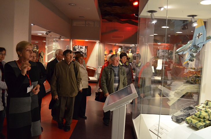 В ходе экскурсии ветераны Курскэнерго посетили Музей «Третье ратное поле России», где хранятся экспонаты времен войны: образцы техники, оружия, документы, карты военных действий и личные вещи военнослужащих, вписавших героические страницы в историю знаменитого танкового сражения. Затем они с интересом осмотрели выставку бронетанковой техники и вооружения Красной Армии и площадку Танкодрома, также расположенные на территории музея-заповедника. Побывали энергетики и в храме Петра и Павла, где на мраморных плитах, покрывающих его стены, высечены свыше семи тысяч имен погибших участников сражения под Прохоровкой. Насыщенный эмоциями и впечатлениями день завершился у памятника Победы «Звонница», увенчанного колоколом весом 3,5 тонны, автором которого является курянин, скульптор Вячеслав Клыков.