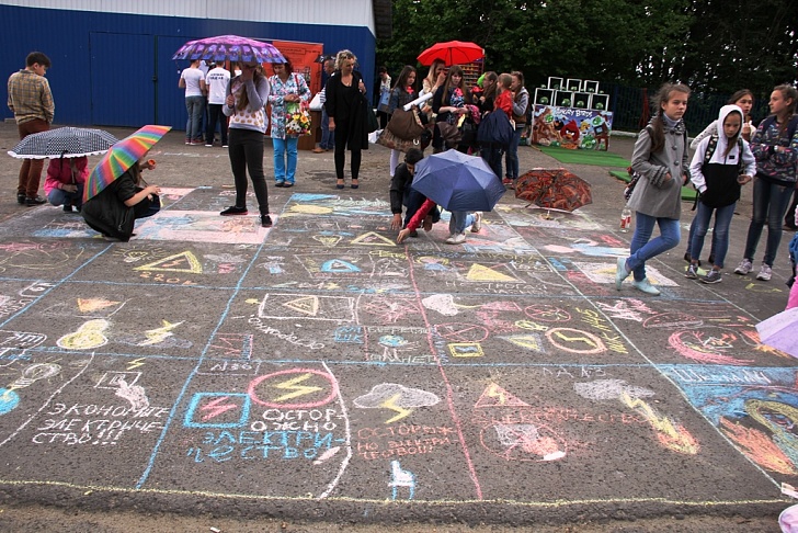 Участниками конкурса рисунков на асфальте «Безопасное электричество» стали учащиеся большинства образовательных учреждений города. Разделившись на команды по два человека от школы, ребята изображали мелом на асфальте сюжеты на тему электробезопасности и энергосбережения.