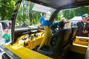 Посетители получили возможность осмотреть высокопроходимый вездеход Tinger, используемый для доставки рабочих к местам аварии в труднодоступные районы. Дети и взрослые с неподдельным интересом расспрашивали о специальной технике и энергооборудовании и делали яркие фотографии.