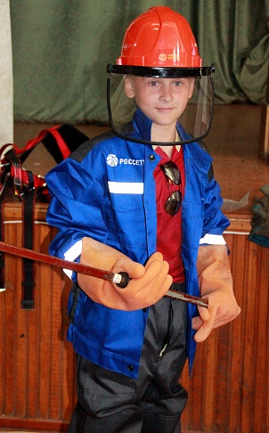 Ребята посмотрели тематические мультфильмы и получили соответствующие памятки. Чтобы участники урока лучше представляли себе работу электромонтеров, специалисты Орелэнерго продемонстрировали и разрешили примерить им их экипировку: защитные каски, костюмы от термического воздействия, диэлектрические перчатки и боты.