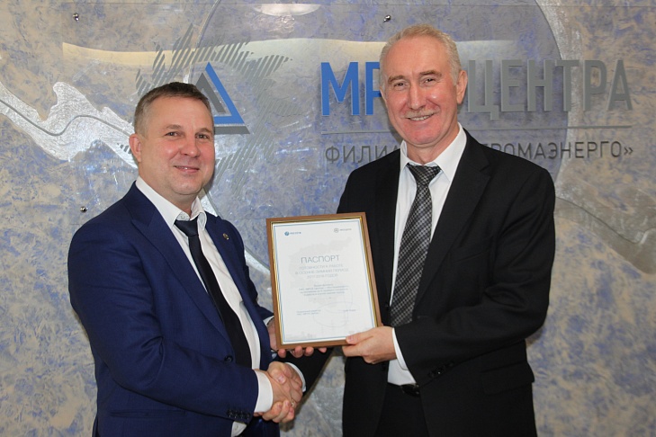 В филиале ПАО «МРСК Центра» - «Костромаэнерго» прошло заседание межведомственной комиссии по оценке готовности предприятия к осенне-зимнему периоду (ОЗП). По его итогам председатель комиссии – начальник отдела релейной защиты и автоматики ПАО "МРСК Центра" Александр Замотай вручил заместителю генерального директора-директору филиала ПАО МРСК Центра»-«Костромаэнерго» Евгению Смирнову Паспорт готовности к работе в ОЗП 2017-2018 гг. - документ, подтверждающий его готовность к работе в период осенне-зимнего максимума нагрузок