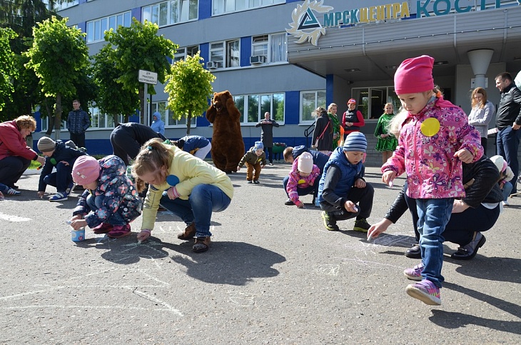 Продолжился праздник флешмобом «Ура! Лето!», в котором дети участвовали вместе с представителями Совета молодежи, и фестивалем рисунков на асфальте «Краски солнечного лета». В завершении мероприятия маленькие гости получили от Костромаэнерго памятные подарки.