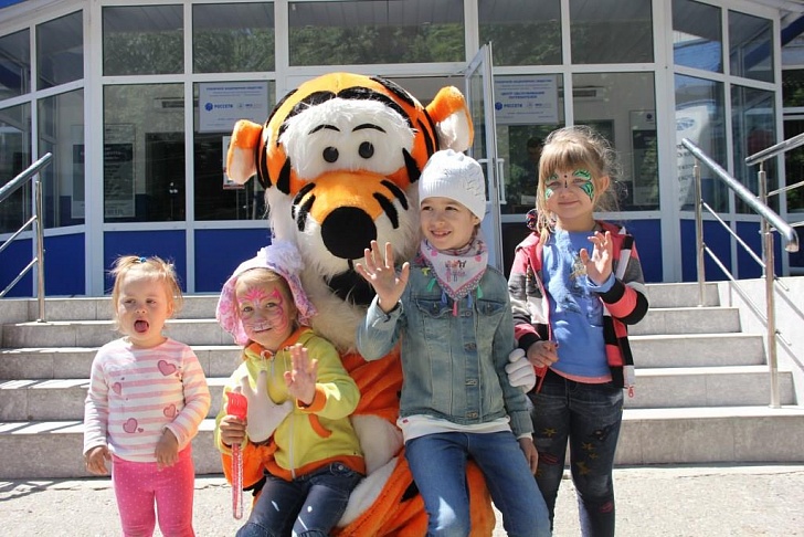 В гости к ребятам пришел сказочный герой «Тигруля», который танцевал и пел с ребятами, помогал им в оформлении рисунков. Во время праздника все участники мероприятия руками мастера аквагрима были превращены в сказочных персонажей или забавных зверюшек.