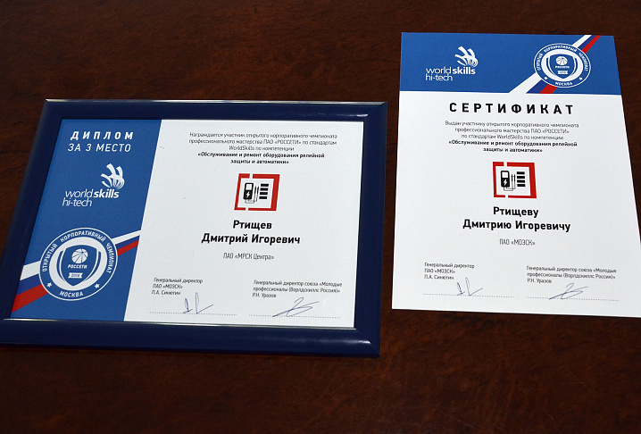 Электромонтер по техническому обслуживанию и ремонту устройств релейной защиты и автоматики службы релейной защиты, автоматики, измерений и метрологии филиала ПАО «МРСК Центра» - «Тамбовэнерго» Дмитрий Ртищев признан призером отборочного тура корпоративного чемпионата профессионального мастерства ПАО «Россети» «Молодые профессионалы» по методике WorldSkills. Чемпионат проходил с 17 по 21 сентября 2018 года под девизом «Надежные люди – надежные сети». Работник Тамбовэнерго Дмитрий Ртищев занял третье место в компетенции «Обслуживание и ремонт оборудования релейной защиты и автоматики».