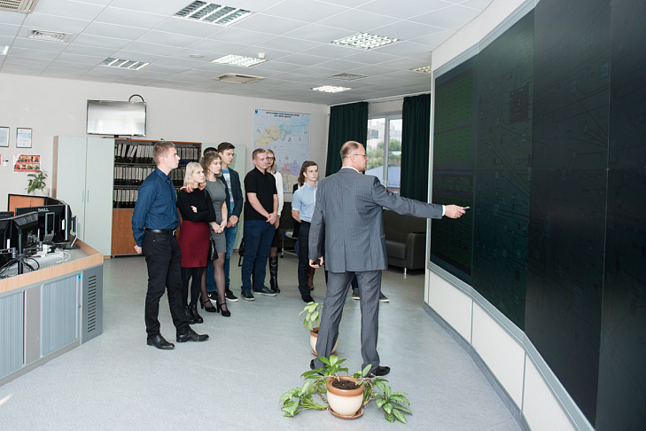 В формате круглого стола со студентами встретились начальник управления корпоративных и технологических автоматизированных систем управления Владимир Недосеков и начальник управления технологического развития Павел Косов. Энергетики обсудили с будущими инженерами основные направления развития электросетевого комплекса, связанные с цифровизацией сети, рассмотрели типовые и перспективные организационно-технические решения.