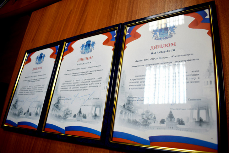 Филиал ПАО «МРСК Центра»-«Костромаэнерго» стал победителем регионального этапа общероссийского конкурса «Российская организация высокой социальной эффективности». Энергетики первенствовали сразу в трех конкурсных номинациях: «За развитие социального партнерства в организациях производственной сферы», «За развитие кадрового потенциала в организациях производственной сферы», «За формирование здорового образа жизни в организациях производственной сферы». В ходе торжественной церемонии награждения, прошедшей в администрации Костромской области, дипломы победителей начальнику управления по работе с персоналом Костромаэнерго Надежде Муравьевой вручил заместитель губернатора Иван Корсун.