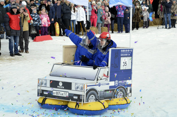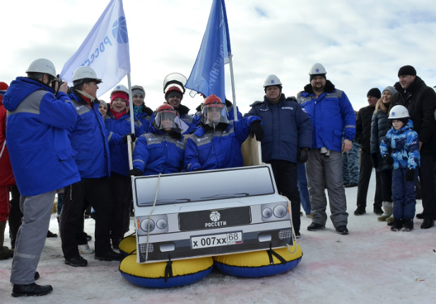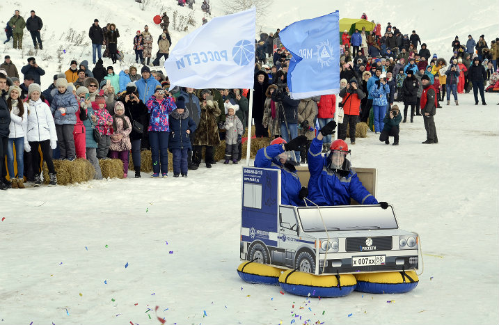 На конкурсе креативных заездов команда сотрудников филиала под названием «Energy sledge» представила сани ручной работы в форме бригадного автомобиля.