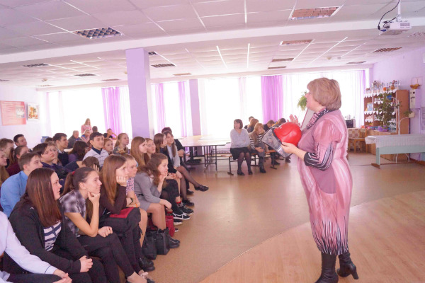 Очередное тематическое занятие прошло в МБОУ «Средняя общеобразовательная школа с углубленным изучением отдельных предметов №46» города Курска, в нем приняли участие более 100 учеников старших классов.