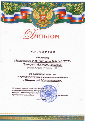 Работники Межевского РЭС Костромаэнерго стали участниками тематического конкурса по выпеканию наибольшего количества блинов. Его организовала администрация Межевского района. Энергетики назвали свои блины «высоковольтными». За самый большой объем блинов они были награждены грамотой за подписью начальника отдела культуры поселка и благодарностью односельчан.