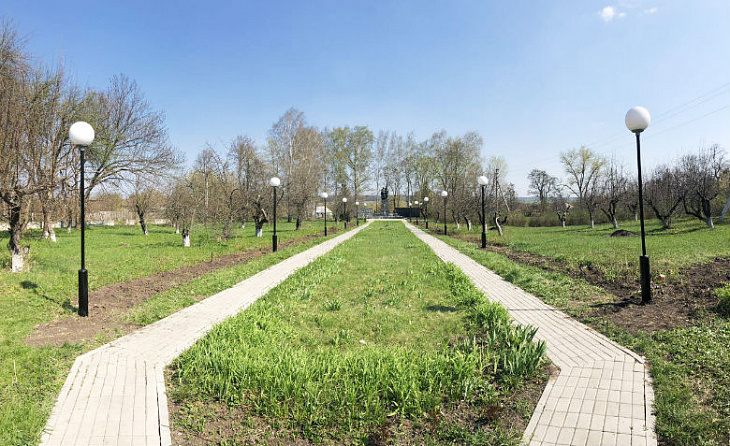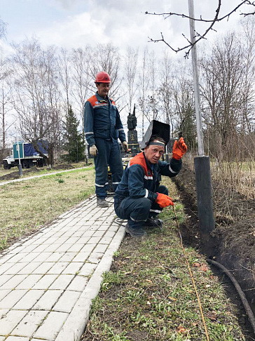 Для освещения площадки перед памятником и прилегающей территории энергетики выровняли и покрасили опоры, установили 14 светильников и два энергосберегающих прожектора, проложили порядка 200 метров кабельной линии электропередачи.