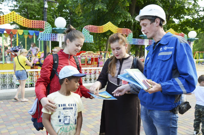 Акция «Безопасное лето» прошла в городском парке культуры и отдыха, где энергетики в форме электромонтера раздавали прохожим листовки с правилами безопасности в доме и на улице, а также пособия со стихами и раскрасками, которые посвящены электробезопасности.
