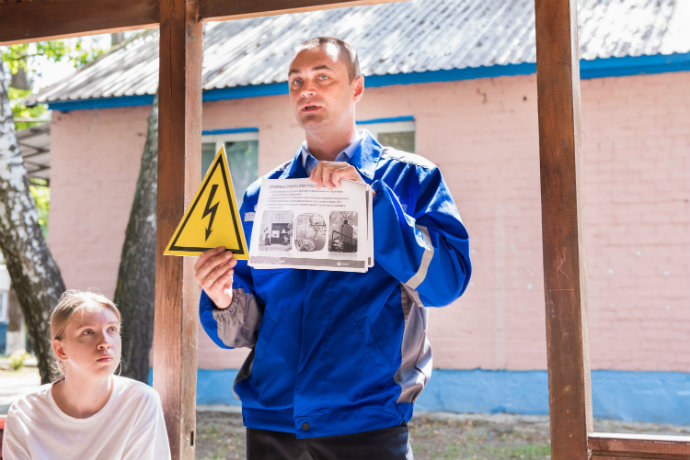 Школьники узнали, чем опасна рыбалка под ЛЭП, необдуманное селфи или граффити на стенах высоковольтных подстанций, какие знаки предупреждают об опасности поражения электротоком, что такое «гусиный шаг» и как выйти из опасной зоны поражения, образовавшейся вокруг оборванного провода.