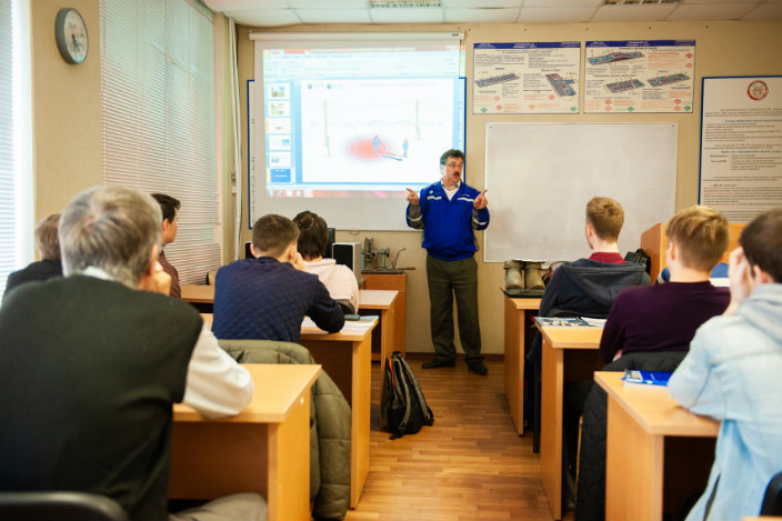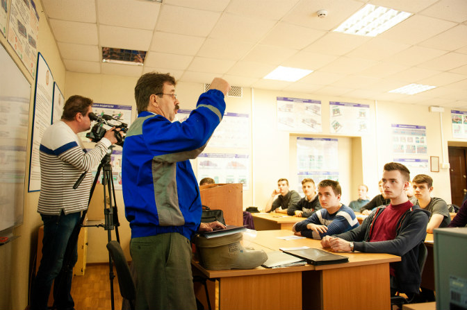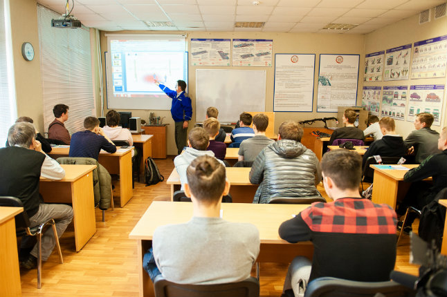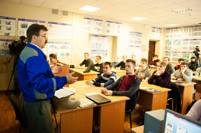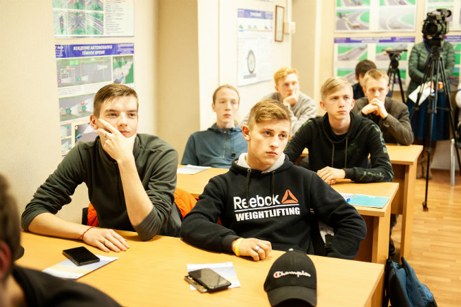 Лекцию слушали будущие водители грузовых автомобилей, направленные на обучение от военного комиссариата, и опытные преподаватели автошколы — те, кто ежедневно рассказывает курсантам о правилах дорожного движения.