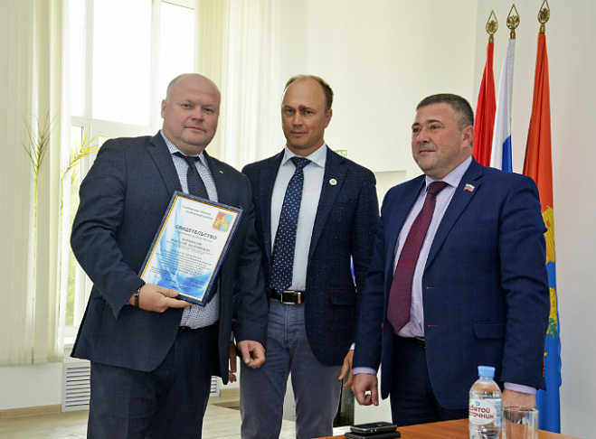 Директору филиала «Россети Центр Тамбовэнерго»* Николаю Богомолову в торжественной обстановке вручили Свидетельство о занесении на Доску Почета Тамбовского района.