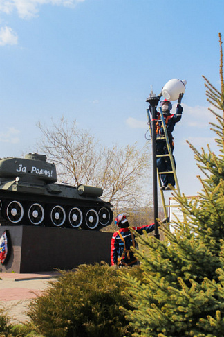 Энергетики заменили светильники и плафоны, выправили и покрасили торшерные стойки на территории экспозиции, посвященной легендарному танку Т-34 и самолету-истребителю СУ-27. Установили шкаф автоматизированной системы управления наружным освещением, что позволит в дистанционном режиме управлять освещением парка без отключения в ночное время.