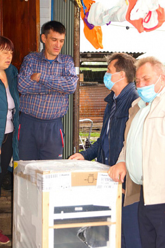 Директор Курскэнерго Александр Рудневский и председатель профсоюзной организации Николай Калинин посетили эту семью, поздравили Сергея и Татьяну с праздником, пожелали здоровья, мира, благополучия и вручили газовую плиту, а также наборы для школьников и развивающие игры.