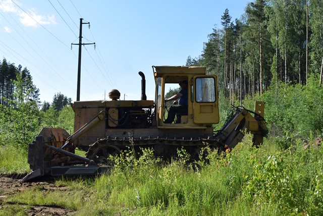 При расчистке протяженных трасс ВЛ применяется бульдозерная техника, которая работает в труднопроходимой местности.