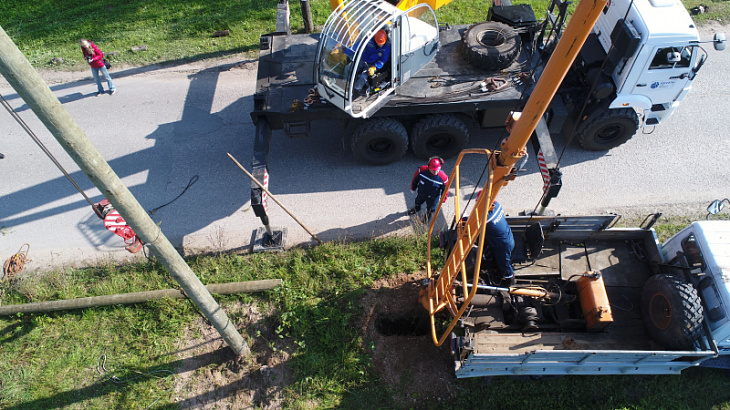 В режиме реального времени бригадами энергетиков были отработаны практические мероприятия по отысканию места повреждения на ВЛ 110 кВ в труднопроходимой местности с применением специализированной техники и БПЛА (квадрокоптера). Проведены учебные действия по применению РИСЭ для восстановления электроснабжения социально-значимых объектов. Также к месту условного повреждения опоры ЛЭП была погружена и доставлена опора 0,4 кВ, после чего была выполнена замена данного энергообъекта с применением специализированной техники.