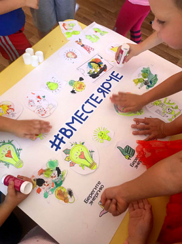 Целью мероприятия стало расширение работы по привлечению внимания детей к вопросам бережного отношения к энергоресурсам и использованию в быту современных энергоэффективных технологий. Проводилось мероприятие в формате творческой лаборатории по составлению коллажей на тему энергосбережения из различных материалов – раскрасок, рисунков с изображением мультипликационных персонажей, цветной бумаги, и картона. По итогам индивидуальной работы детям было предложено составить общий большой коллаж под названием «#Вместе Ярче». В ходе мастер-класса сотрудники филиала смогли в игровой форме рассказать детям об энергосберегающих технологиях, познакомить их с основными правилами экономии электроэнергии в быту.