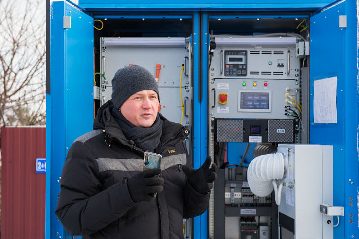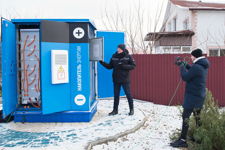 Инновационная система накопления электроэнергии реализована на базе современной литий-ионной аккумуляторной батареи емкостью 53 кВтч, оснащенной полупроводниковым преобразователем мощностью 10 кВА, выполняющим функции зарядного устройства и инвертора при выдаче мощности, а также автоматическими системами управления и учета электроэнергии, устройством защиты от перегрузок. Современное оборудование телемеханики и связи обеспечивает передачу в Центр управления сетями данных о наличии или отсутствии напряжения в сети, уровне заряженности батареи и других рабочих параметрах. Реализовано дистанционное управление включением и отключением устройства.
