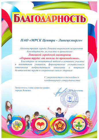 «Для Липецкэнерго охрана труда и сохранение жизни и здоровья работников является главной ценностью, поэтому мы не могли остаться в стороне от такого значимого мероприятия. Профилактика производственного травматизма, бережное отношение к собственному здоровью — обо всем этом нужно говорить с детьми еще со школьной скамьи. Благодарим участников и организаторов конкурса и поздравляем победителей. Подобные мероприятия помогут формированию принципов безопасной работы и здоровых условий труда», — поздравил призеров и. о. заместителя главного инженера — начальника управления производственной безопасности и производственного контроля Дмитрий Коротков.