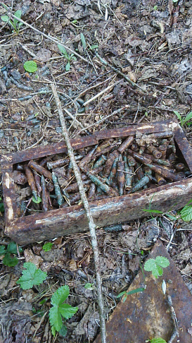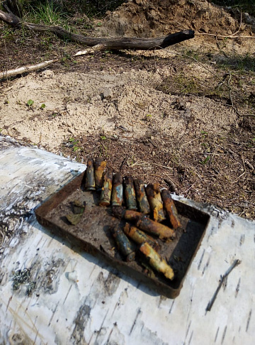 В результате проведенных работ были обнаружены 2 гранаты, артиллерийская мина, 127 патронов различного калибра и запалы от гранат.